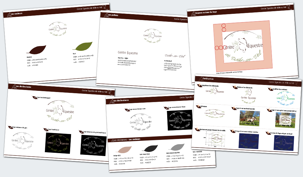 Selon les besoins du client je vais également créer le reste de l’identité visuelle de son entreprise. C’est-à-dire des modèles de mise en page pour les courriers ou les cartes de visites par exemple. Des pictogrammes, un style d’illustration ou de traitement des photos. On va également choisir une ou plusieurs typographies. Tous ces éléments permettront à l’entreprise d’être facilement reconnaissable.