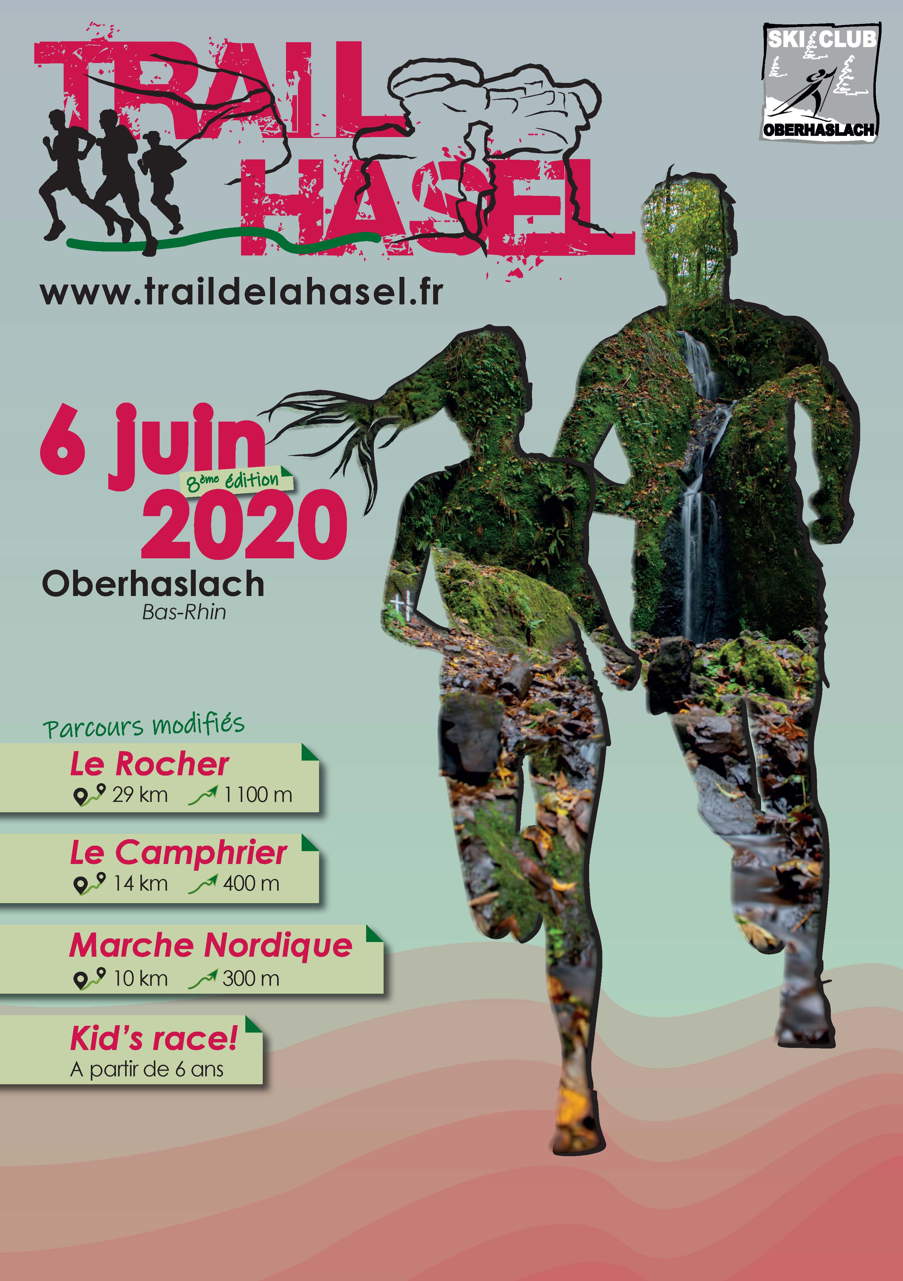 Le ski club d’Oberhaslach (Alsace) m’a demandé de créer une affiche pour la huitième édition du trail de la Hasel. J’avais pour seule consigne d’utiliser une des photos fournies par leur soin. J’ai donc proposé plusieurs designs pour cette affiche, toujours sur le même modèle pour la mise en avant des informations mais avec des traitements différents pour le fond de page.