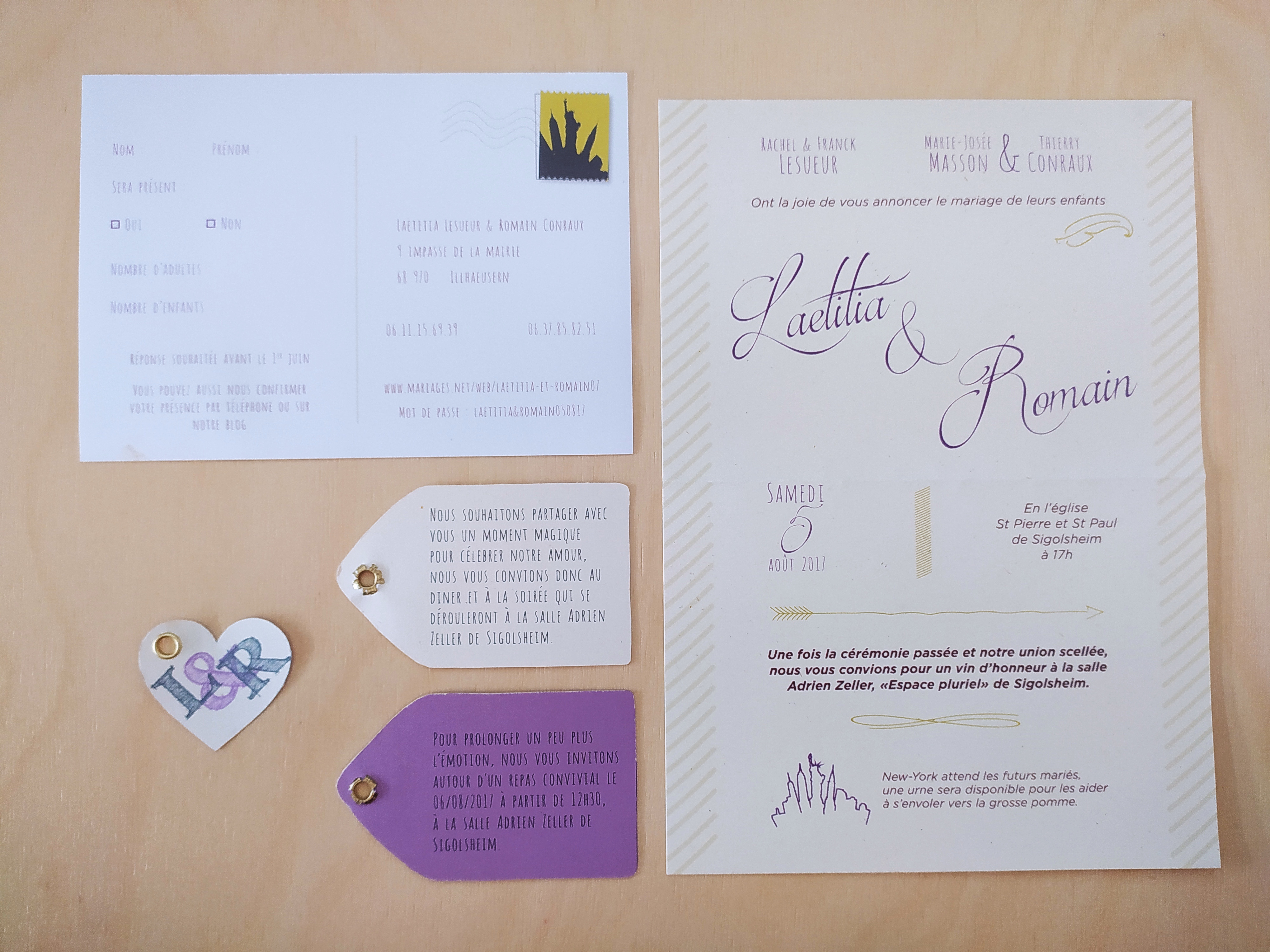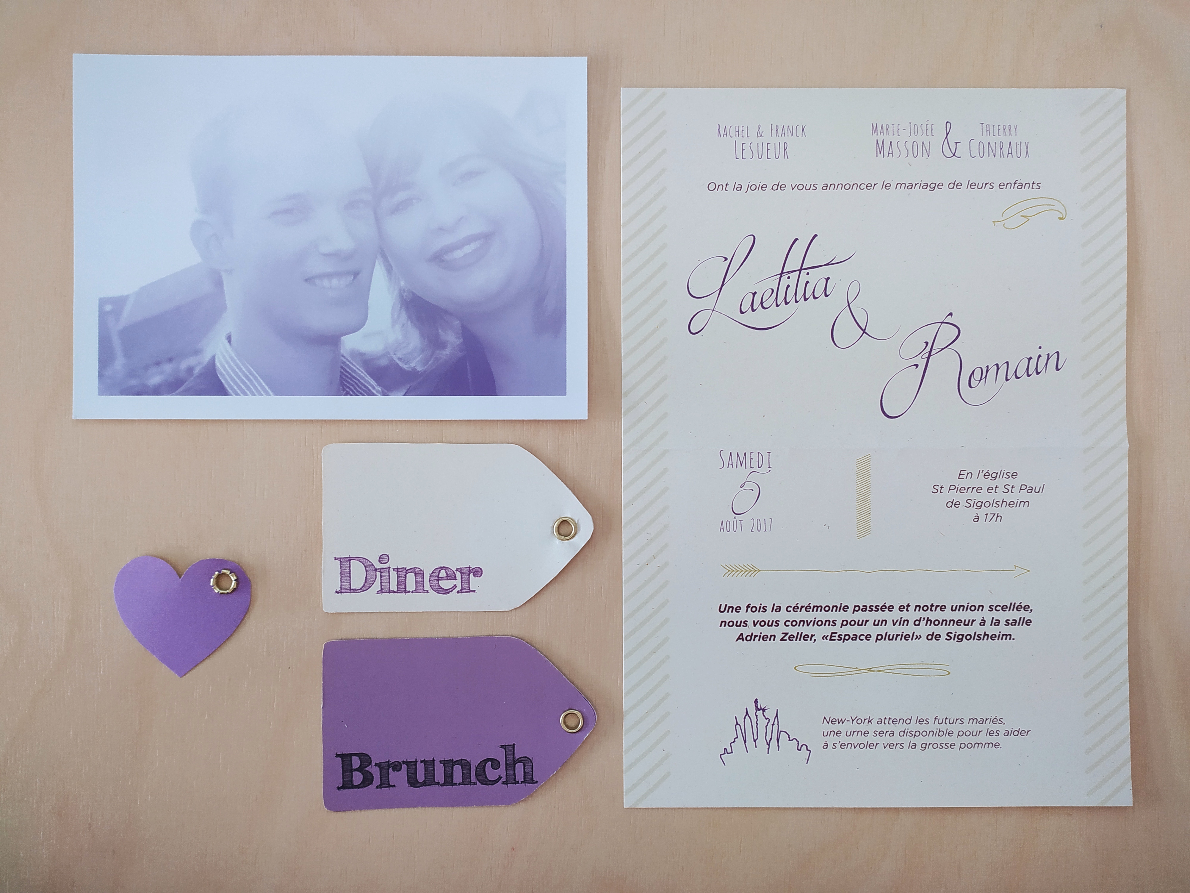 Laetitia et Romain m’ont fait confiance pour réaliser les faire-parts de leur mariage. Le cahier des charges étaient le suivant :