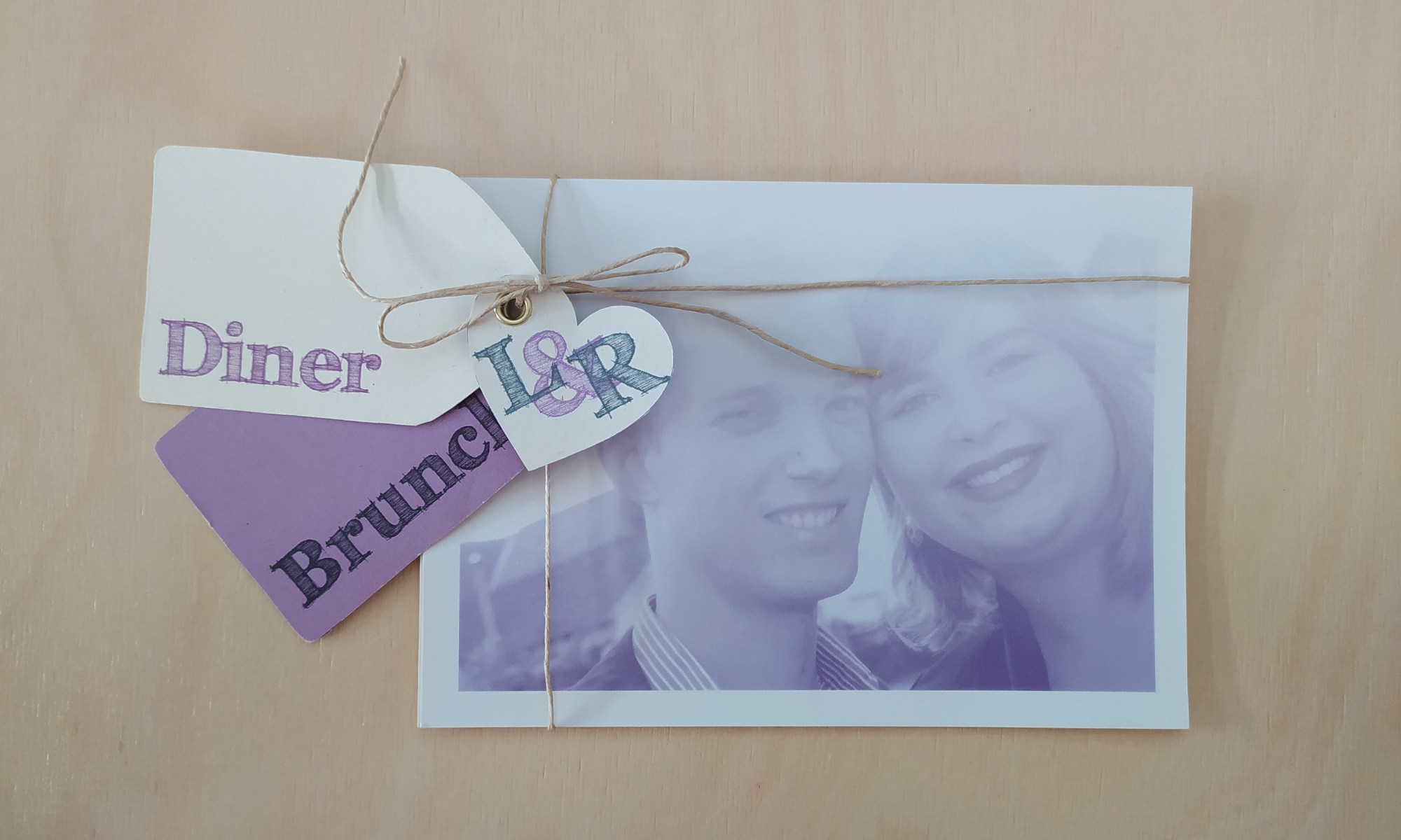 - un système d’étiquettes pour adapter l’invitation en fonction des personnes, une étiquette brunch et une pour le dîner,